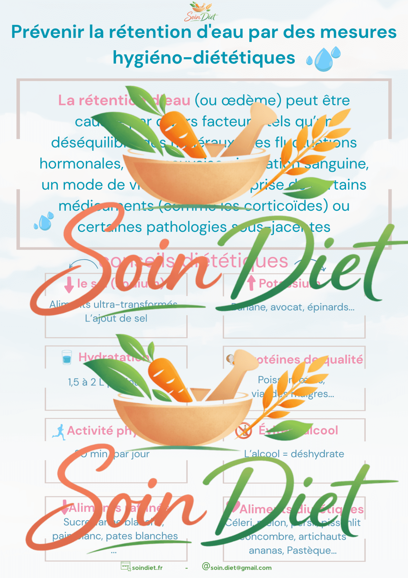 Une fiche synthétique sur la prévention de la rétention d’eau : causes fréquentes et conseils diététiques à utiliser en consultation ou en atelier.